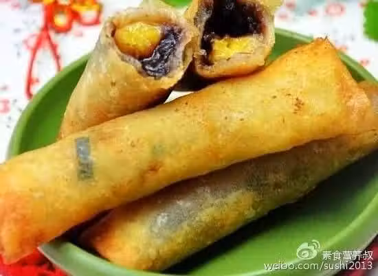 5、鍋中油燒至五成熱,放入春捲,小火慢炸至金黃,撈出瀝油即可裝盤食用。