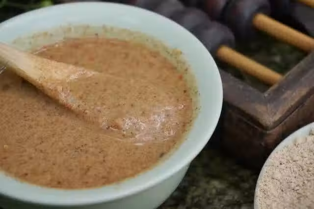 3、將磨好的芝麻粉、紅棗和適量的水一起放入攪拌機中打成糊狀,然後過濾掉紅棗渣即可。