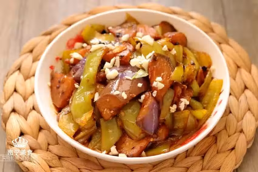 紫茄子1根、青椒2根、蒜米4粒、生抽2湯匙、陳醋半湯匙、食鹽1湯匙