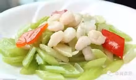 2、將以上物料(西芹、青紅椒、鮮尤), 400b 入水燙八分熟起鍋;