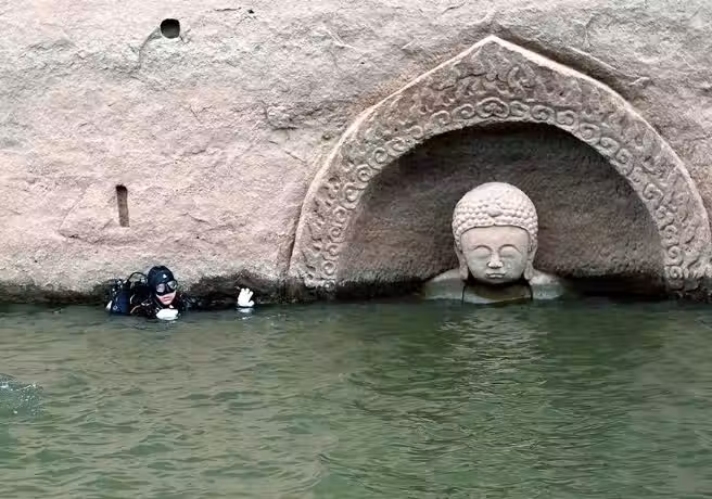 水庫水位驟降!大量神秘「巨型佛像」露出水面 專家調查卻發現「水底更驚人」:來歷不簡單