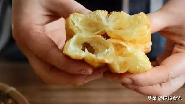 如果按照配方操作,下鍋炸的時候油條不蓬鬆,一是因為油溫太高或者太低,二是因為炸的時間太長。油溫太低,油條進油鍋會沉底,油溫不夠麵糰會很快粘在一起,最後變成一根硬邦邦的棍子。油溫太高,外表會迅速炸糊,裡面的組織沒有很好的膨脹就被高溫鎖住了,導致外麵糊了裡面還是生的,所以油溫很重要,可以先炸一根試一下油溫,油量不要太少,油條浮不起來就會受熱不均,也容易膨脹不起來。