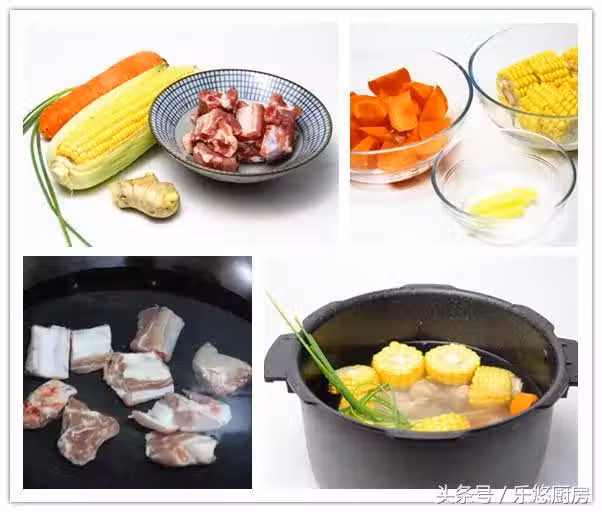 第四步:把焯好的排骨、胡蘿蔔、玉米、薑片、香蔥一起放入電飯鍋中,再倒入1大碗清水,然後蓋好鍋蓋,選擇燉湯功能即可。燉好後再往鍋中放1小勺鹽調味。(燉湯時候,香蔥建議放整根的,這樣方便在燉好後撈出)
