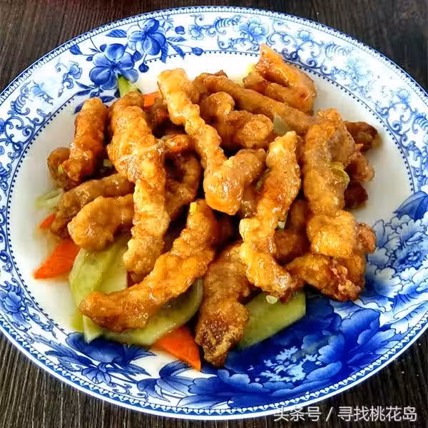 用時:半小時。難易程度:簡單。分量:2人份。用料:豬裡脊肉2兩,黃瓜半根,胡蘿蔔少許,澱粉1勺,雞蛋清1個,鹽3克,雞粉3克,料酒生抽各少許,糖8克,食醋12克,姜粉、花椒粉各少許,蔥蒜少許。