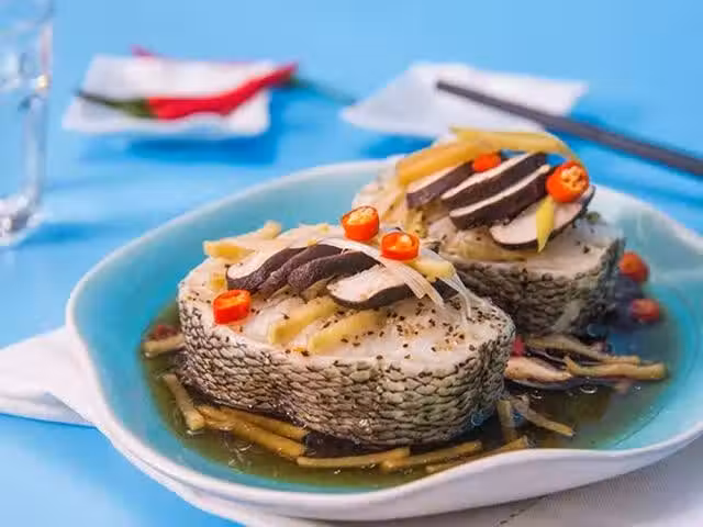 原料:鱈魚1塊、干香菇2朵、小蔥2根、姜3片、料酒1小勺、蒸魚豉油1大勺