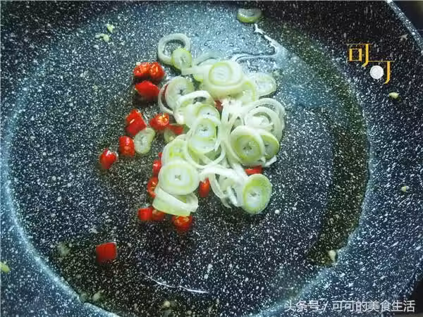 原鍋熱鍋冷油爆香蔥花和辣椒