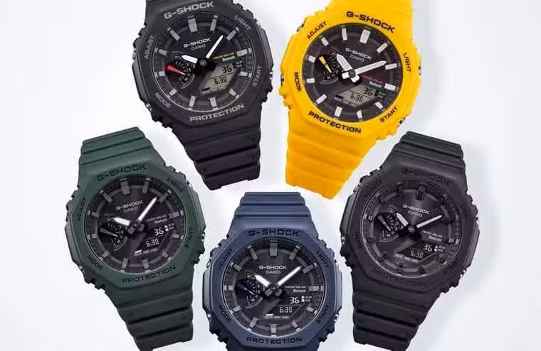 豪華版農家橡樹的錶殼材質依舊是樹脂搭配礦物玻璃,加上耐衝擊構造,這使得手錶外觀的變化性同樣很豐富,G-SHOCK可以透過改變錶殼顏色、改造面盤的設計等讓手錶延伸出許許多多的變體。現在市場對於運動型手錶以及手錶顏色的接受度已經比從前高多了,所以在任何場合佩戴農家橡樹都不會覺得突兀。目前GA-B2100剛發表一段時間就已經同步擁有黑、綠、藍、黃等五種款式(其中黑色又有黑色搭灰色的GA-B2100-1A和全黑色GA-B2100-1A1兩款),大致都算是好搭且主流的顏色。對照GA-2100問世三年多來已經累積各式各樣的版本,豪華版農家橡樹未來的選擇也只會愈來愈讓人眼花撩亂而已。