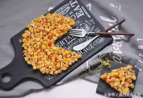 作為粗糧的玉米,有很多種烹飪的方法。其中我最愛的就是玉米烙了,外表酥脆,內里香嫩,這滋味真是美極了。這次我特地在玉米烙上撒了切碎的枸杞干,既中和了油炸的火氣,又使口感更加豐富,吃起來也更健康。