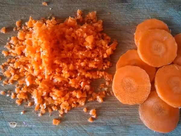 家裡有破壁機的可以將蝦仁、胡蘿蔔、生薑、青蒜苗一起打細即可。