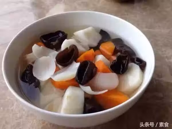 材料:山藥 、胡蘿蔔 、木耳 、鹽