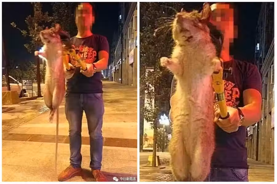 中國大陸南方的老鼠非比尋常,有時會出現體型大到不科學的老鼠,有居民逮到一隻跟野兔一樣大的野生老鼠,身長超過100公分非常嚇人。