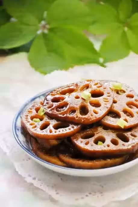 2、炒鍋置旺火上,倒入油3湯匙,燒至溫熱,下蔥末、薑末、醬油、糖、醋和少量水,加入藕片翻炒,用澱粉勾芡,淋入花椒油,出鍋即可。