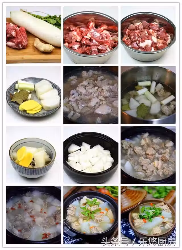 第七步:羊肉燉好後,將鍋中的蘿蔔塊、薑片、蔥段、香葉一起撈出。(第一次放入鍋中的蘿蔔塊,是用來吸收羊肉中的羊膻味。所以,一定要將白蘿蔔撈出來。這也是小妙招哦)
