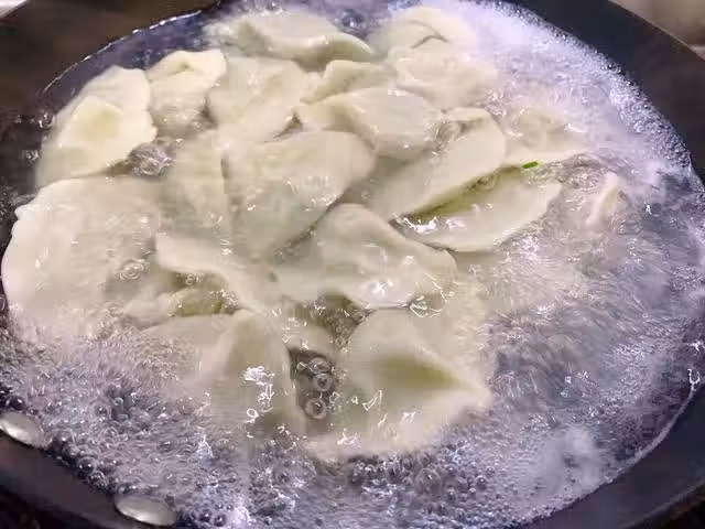 最合適溫度應該是溫水下鍋,水煮開微微冒小泡的時候,就可以將凍餃子下鍋。因為餃子冷水下鍋煮的時間會比較長,餃子長時間煮制就容易爛;開水下鍋的話,餃子容易受熱不均,外面熟了,裡面還生的。