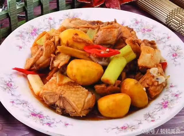 食材:帶殼栗子、雞肉、干辣椒、蒜泥、生薑、小蔥少許、料酒、細砂糖、醬油、雞精。