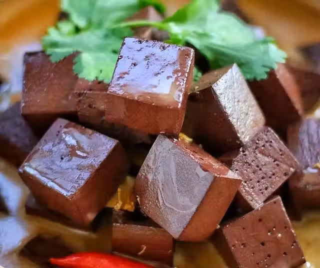 豬血堪稱「養血之王」。含鐵量非常豐富,是豬肝的兩倍。鐵是造血的重要材料,而且豬血也可以去除污物,經期適量食用可以有效地排出污血,讓身體更健康。