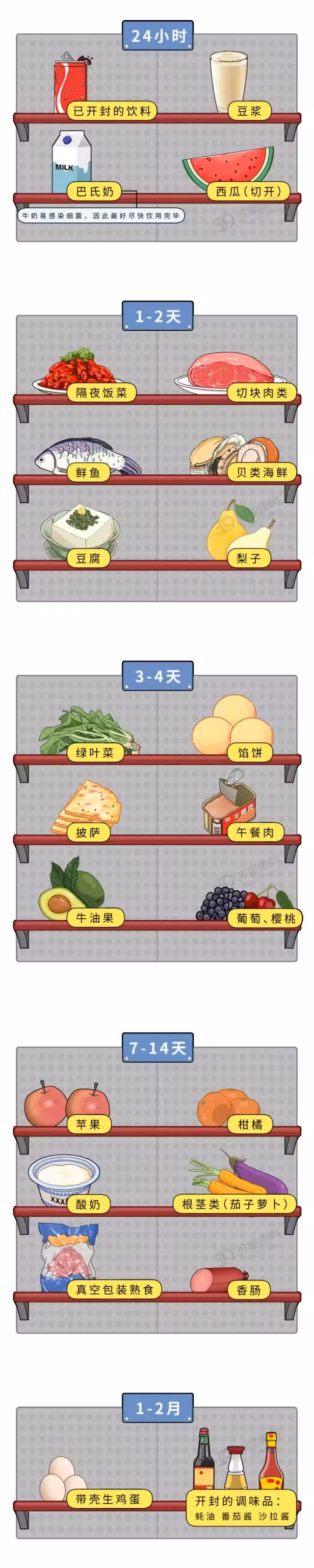 最後,送給大家一份食物保存時間表,安心用冰箱,遠離胃癌!