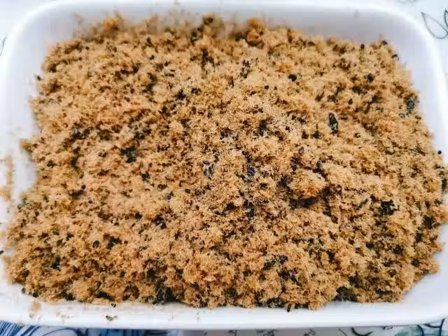 中途加入海苔碎和黑芝麻,海苔我是用手撕碎的