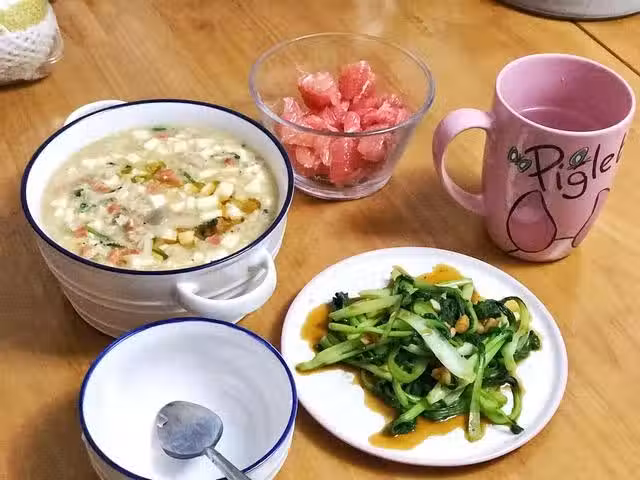 準備食材,圖方便在盒馬生鮮買的,量也不多,夠1-2人份。現將所需食材洗凈,切丁,雞蛋打散,豆腐切小塊,備用。