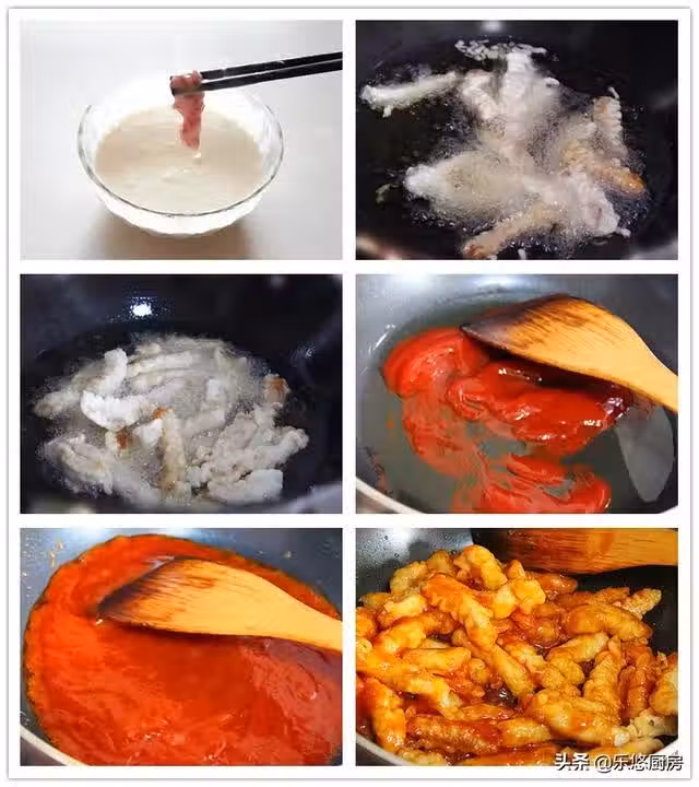 第十四步:將炸好的肉條放入鍋中,快速翻炒一下。讓肉條表面都粘滿料汁,然後關火。(翻炒的時間不要太長,時間太長,肉條的表皮就不會太脆了。)