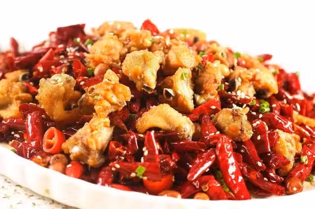 雞肉、花椒、干辣椒、蔥、熟芝麻、鹽、味精、料酒、食用油、姜、蒜、白糖。