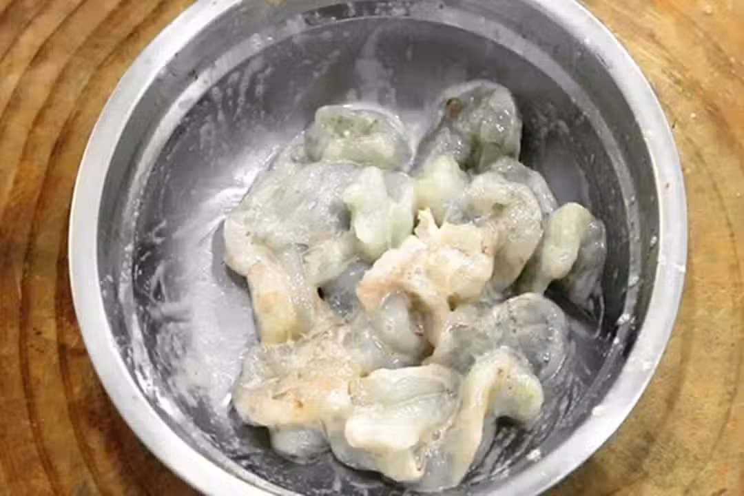 2.蘆筍一小把,洗凈以後切成大小均勻的滾刀塊;紅椒半個切成菱形片、用來配色;蔥姜都切成片備用。