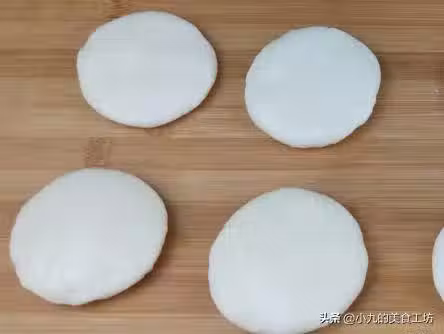 先在手上抹上一點食用油,取出一個小麵糰劑子,將小劑子捏成一個小圓餅,放入一小勺調好的餡心,然後將口收緊包好,再用手壓扁,一個【糖糕】的形狀就出來了;