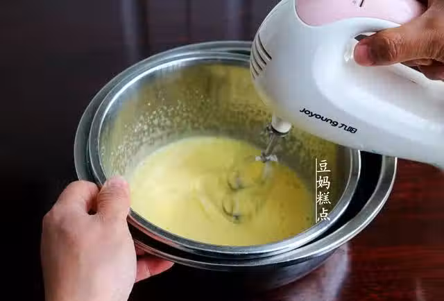 這樣操作可減少蛋液中的大氣泡,使得蛋液更加細膩,對最終成品的光滑度很有影響哦,不可偷懶。