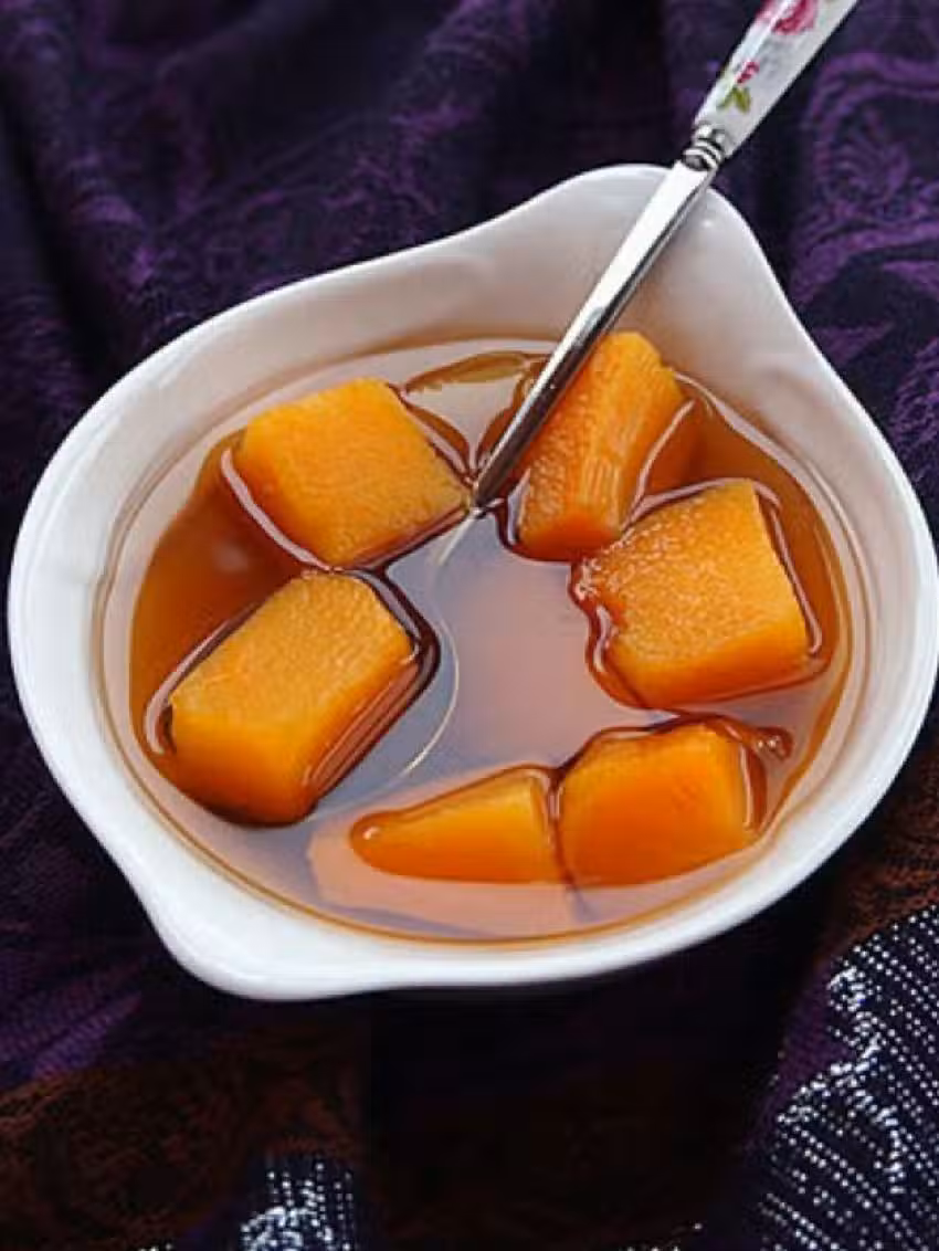 材料:番薯500g、冰糖150g、生薑一大片拍松