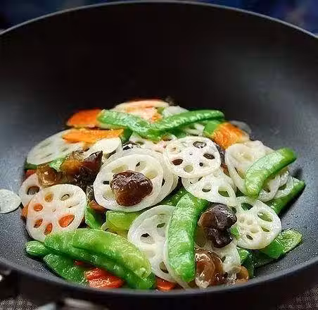 主料;蓮藕1節、荷蘭豆200克、木耳3朵、胡蘿蔔一小段