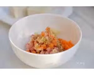 將肉糜攪拌均勻.放置十分鐘讓肉糜入味.