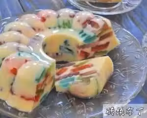 7. 放入三種口味的布丁塊,再倒入牛奶布丁。