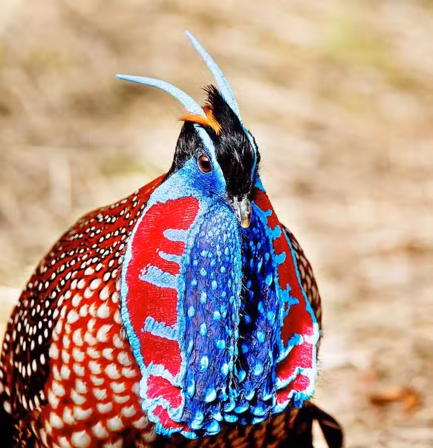 其實,不是所有的紅腹角雉都「天生麗質」,一般說來,雌鳥的羽毛呈現灰褐色,有黑白相間的斑紋和斑點,看起來自然不如雄鳥的深栗紅色好看。但是雌鳥羽毛的低調色其實是它的保護色,讓它在孵卵時,不至於因羽毛顏色過於明亮而被天敵發現。