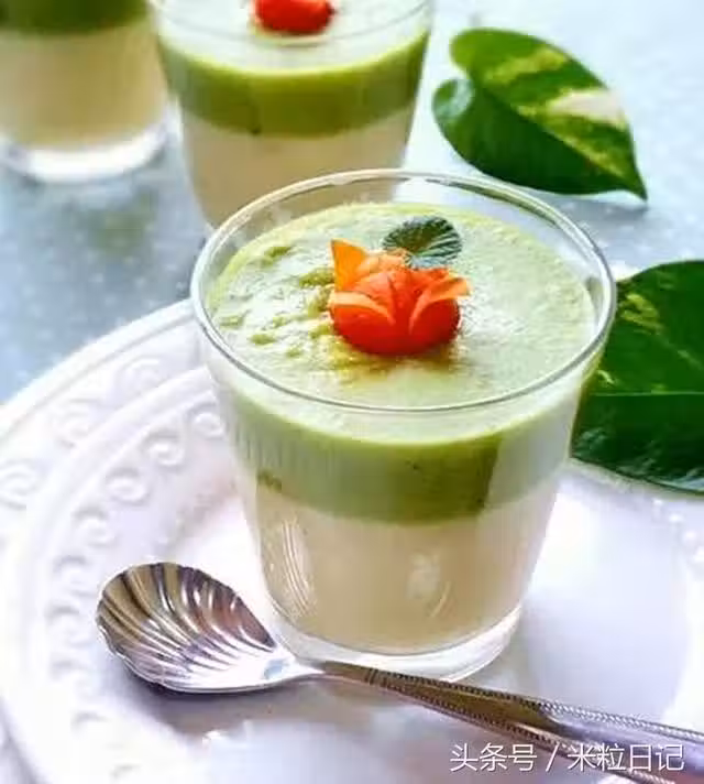 7、倒入杯中,加少許清水,用粉碎機打成蓉