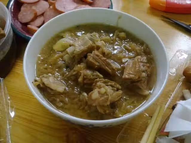 東北酸菜;豬小排;蔥;姜;蒜;八角;花椒;鹽;醬油;豬油