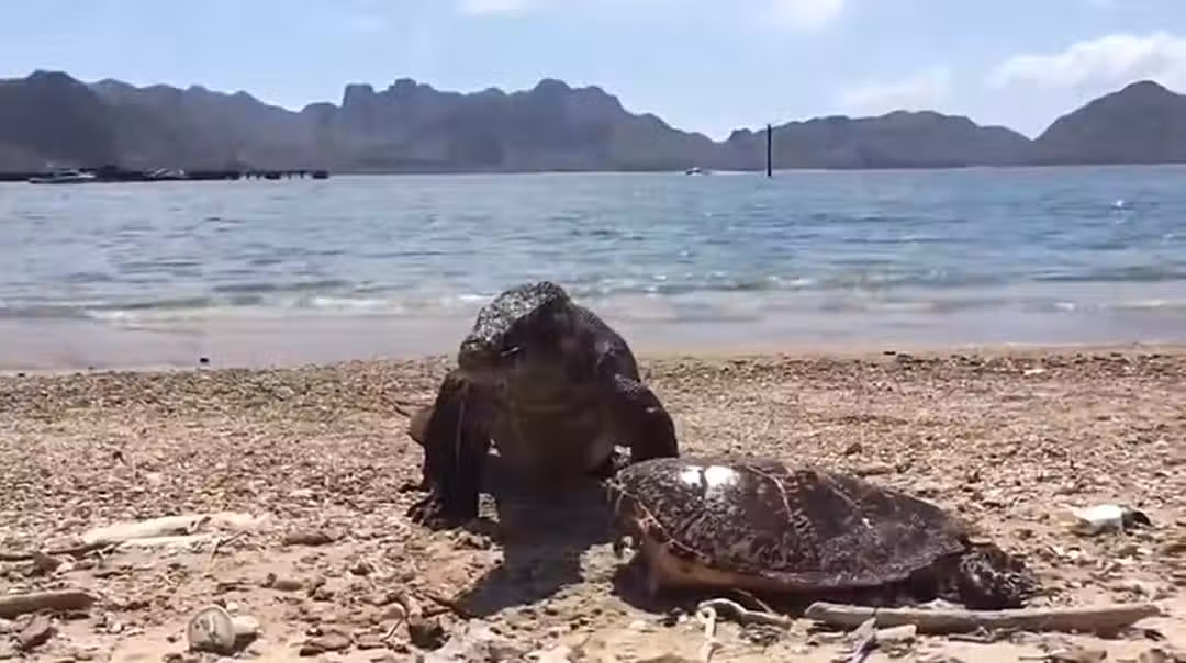 帶著「頭盔」的怪龍一步步走上沙灘:科莫多龍為吃光龜肉鑽進龜殼,合體成「科莫多龍龜」