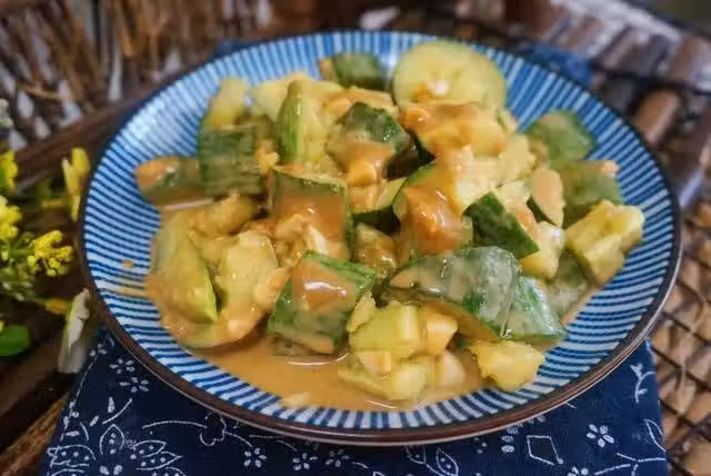 3.澆上萬能芝麻醬拌勻,別提多好吃了。