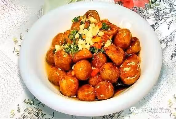 【原料】:小芋頭若干、雞腿一隻、白糖適量、蔥花少許、芝麻少許。