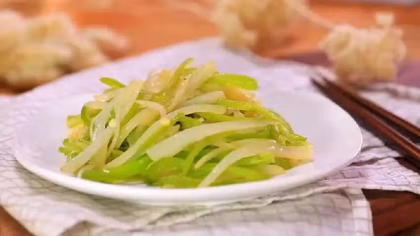 5. 接著鍋中倒入青椒絲翻炒片刻