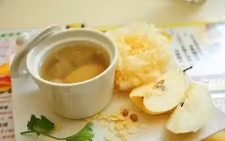 做法:將雪梨切開兩半,中間挖空,將象牙絲放中間。隔水燉。喝水,也可連肉吃。