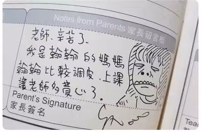 調皮老爸簽聯絡簿「用自畫像撩老師」!翻開下一頁「老婆直接被出賣」網笑翻:「爸爸應該已經被媽媽揍到18層地獄了吧!」