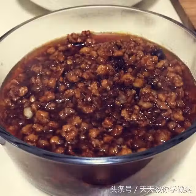 肉糜 大約250克 大蒜 一隻 六月香豆瓣醬、甜麵醬、辣醬 白砂糖、料酒