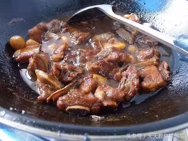 確認煮酥軟後轉為大火收汁,為了防止沾鍋焦底請持續晃動鍋子,慎用鍋鏟,鍋鏟只會讓酥軟的排骨骨肉分離,大蒜被搗成熟蒜泥