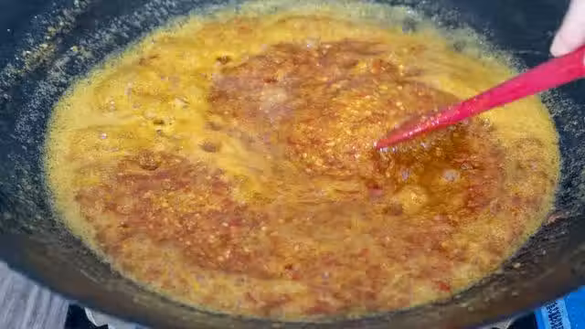 8、像這種狀態就可以出鍋了,成品比較濃稠,香味也完全熬出來了,放涼後就可以盛出來了,一定要是無水無油的容器,密封好後可以放冰箱保存一個月;