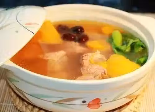 南瓜半斤、排骨1斤、生薑2片、棗2粒、鹽適量。