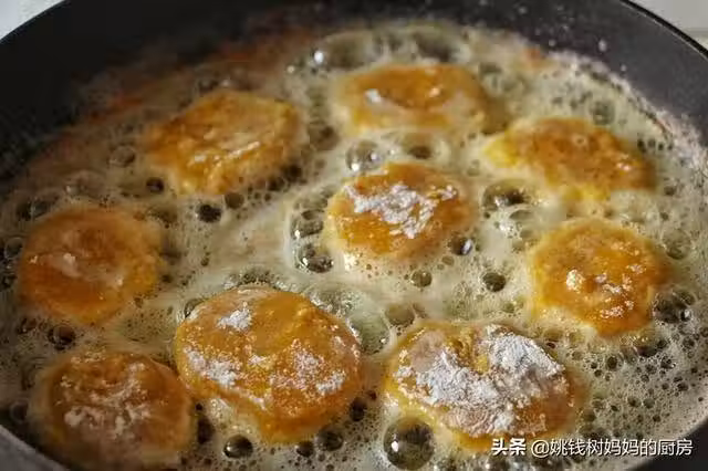 9、翻面,將兩面都煎至金黃,即可關火裝盤,蘸上喜歡的醬開吃吧,一次吃不完的可以放冰箱冷凍,最好一周內吃完,吃之前用微波爐、烤箱加熱都可以。