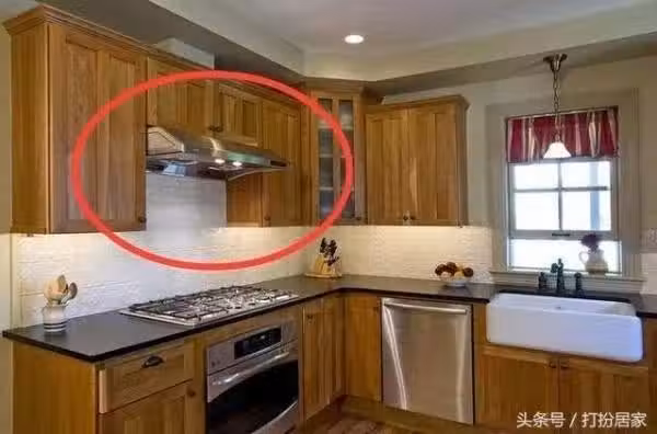 廚房牆櫃高度設計為1.6米。如果低於1.5米,不僅影響廚房操作空間,而且使整個廚房顯得侷促壓抑,但太高又不便於業主使用牆櫃收納。