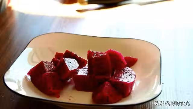 第六步、然後再切紅心火龍果,火龍果直接去皮切成大塊就可以了。
