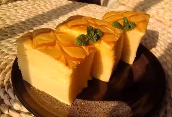 這款蛋糕口感介於戚風和海綿中間,非常美味,燙麵戚風的做法,蛋糕體口感柔軟細膩,水份十足,口感層次多樣,加入了千葉紋,多了小小一步,使這款蛋糕披上了一件美麗的外衣,表面的蛋黃千葉紋略帶韌性。