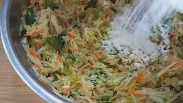 14、一把攪拌到用手拿起來,能團成團的狀態就可以了,麵粉不要放太多,那樣炸出來口感會偏硬